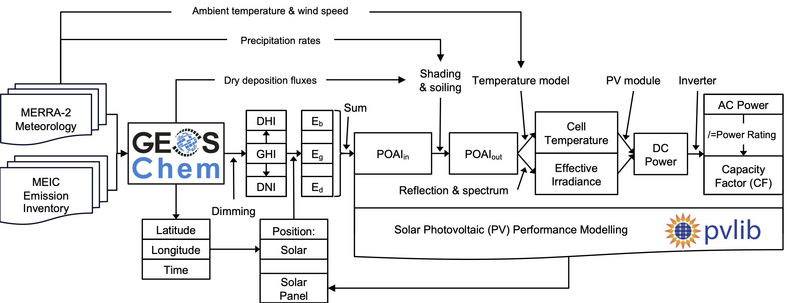Note that models like GEOS-Chem may provide only GHI; in such cases, we use the Erbs model (or similar methods) to estimate DNI and DHI from GHI.