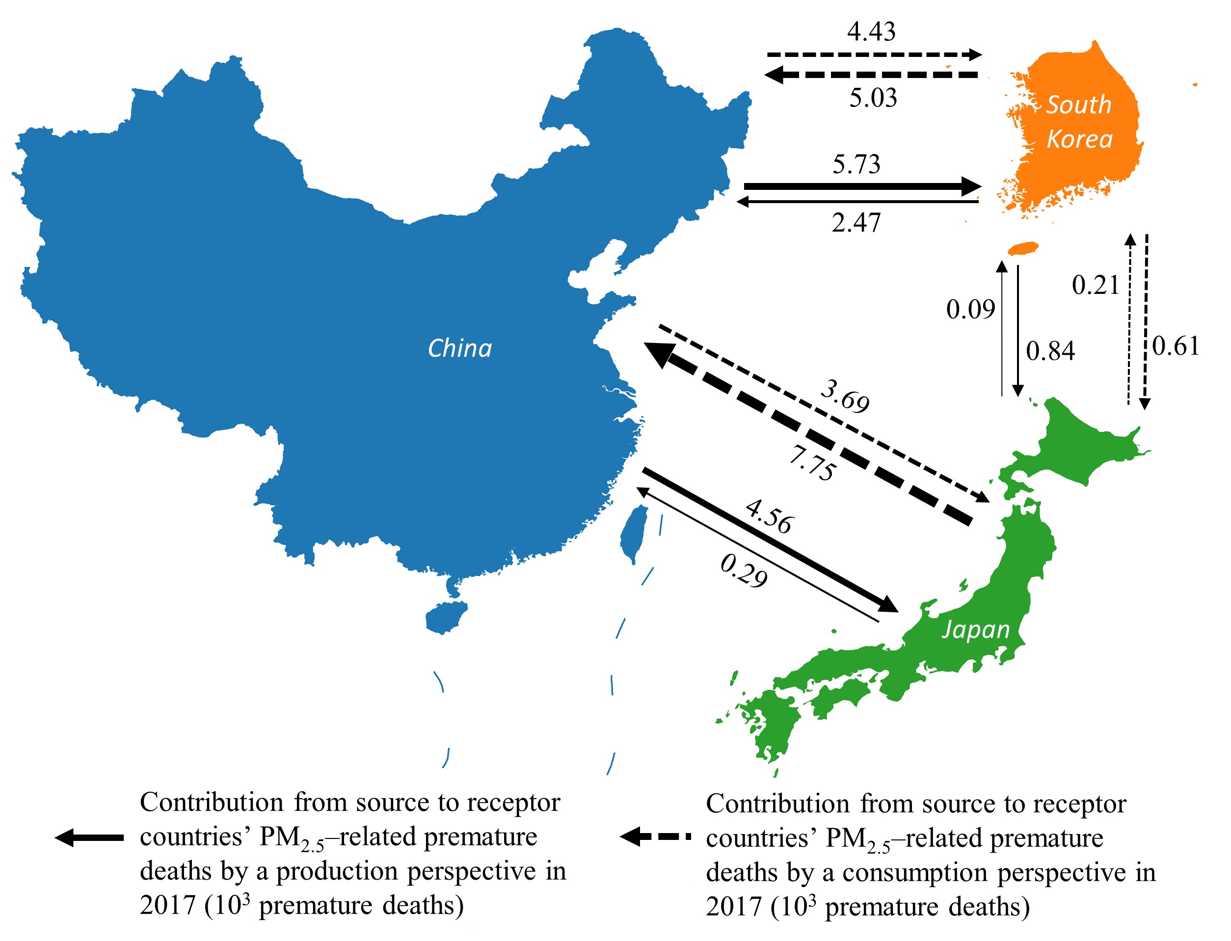 Liu, J.#, Yao, F.#, Chen, H.* and Zhao, H.*, 2025. Quantifying the Source–Receptor Relationships of PM2.5 Pollution and Associated Health Impacts among China, South Korea, and Japan: A Dual Perspective and an Interdisciplinary Approach. Environmental Health Perspectives, 133(3-4), p.047011. doi: 10.1289/EHP14550